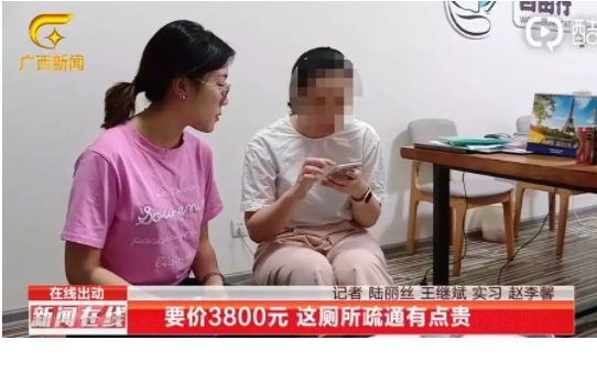 近日,据广西广播电视台《新闻在线》报道,莫女士的工作室厕所堵了,于是她在某网站上通过中介找来了一位师傅,上门进行疏通厕所服务。