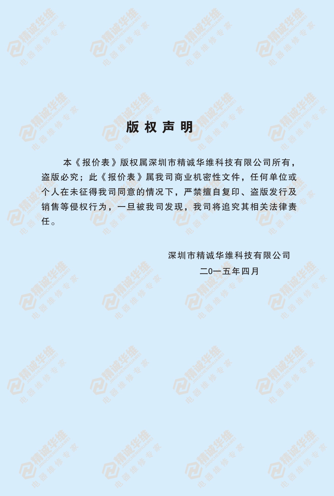 报价表版权声明